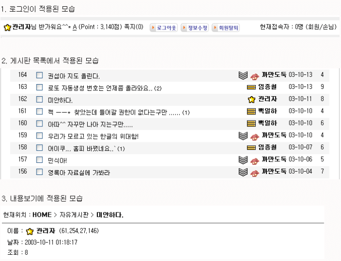 그누호환 레벨별 자동아이콘 부여 [최종수정 2003.10.26 14:30]