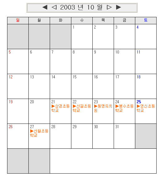 <tr height=16 bgcolor=#E7E7E7 align=center><td><font color=red>일</font><td>월<td>화<td>수<td>목<td>금<td><font color=blue>토</font>