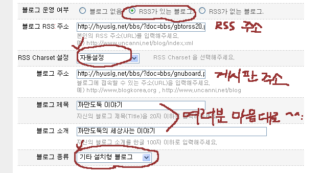 블로그코리아에 등록하기 정보