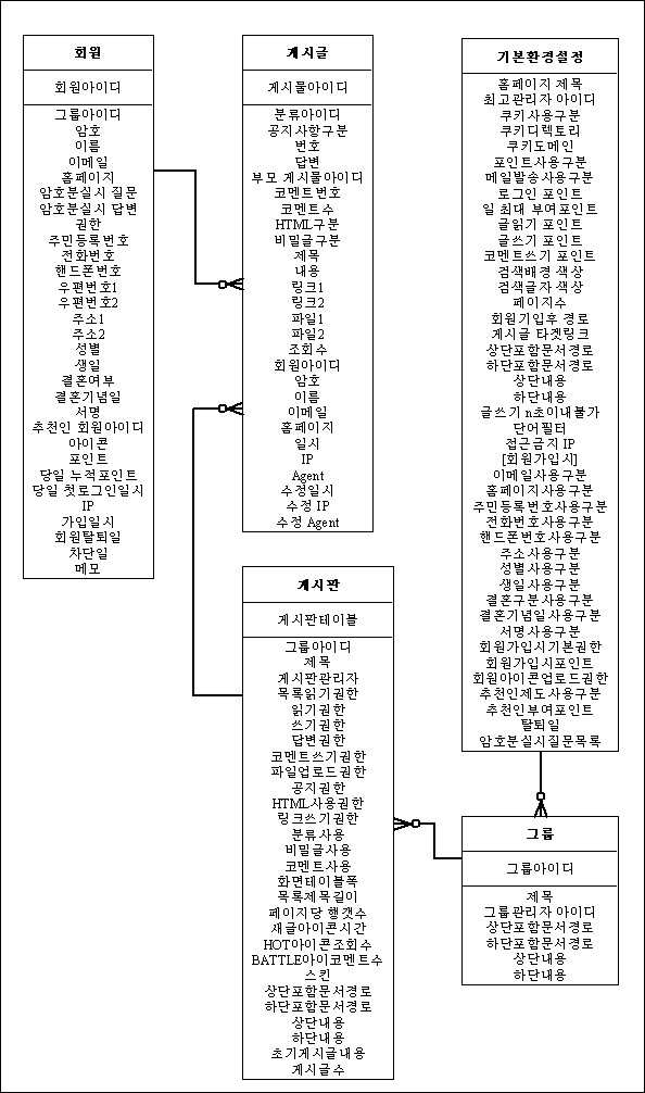 일반 그누보드 2 ERD (Entity Relationship Diagrams)
