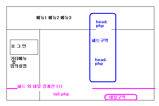그리고 head, tail의 이름은 그누보드3.xx에서 설정된 이름으로 index까지 설정된 내용이니