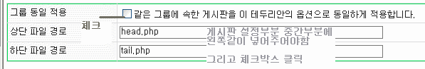 >>>>>>생성된게시판에 하나만 위의 절차를 적용하시고 난후 같은그룹내 적용 체크박스를