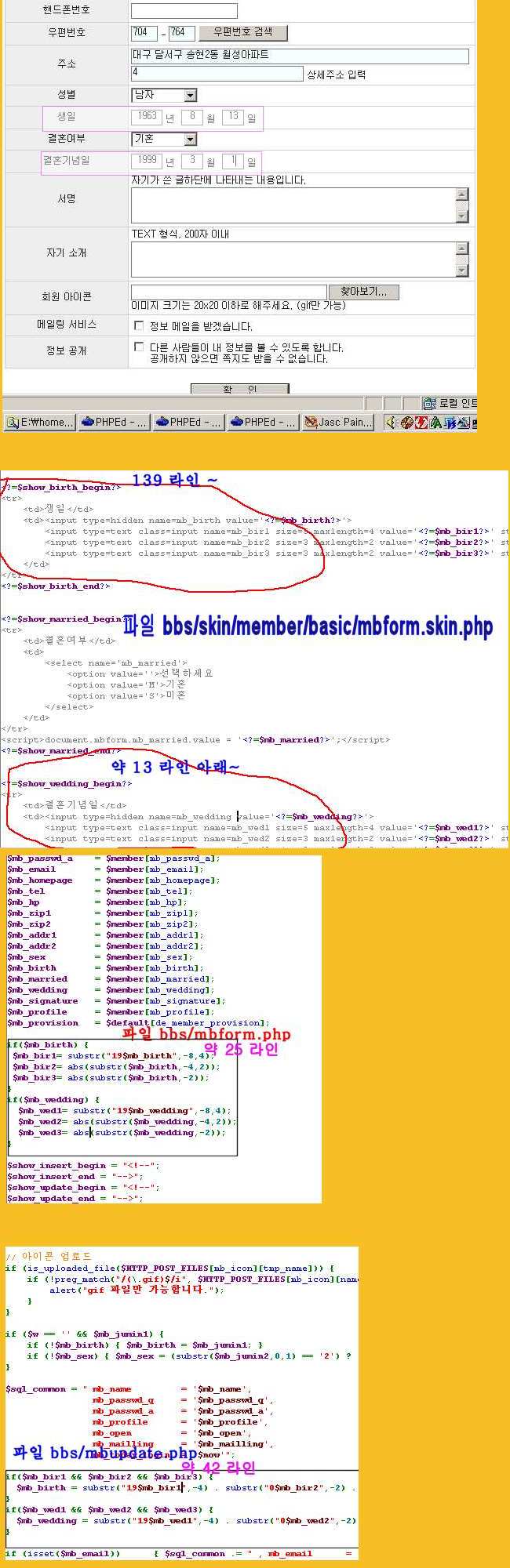 3) bbs/skin/member/basic/mbform.skin.php 에 필요한 소스 (추가/변경)