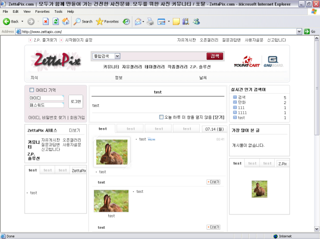 링크1의 모습은 현재 그누보드를 설치한 후 test라는 그룹과 test라는 게시판을 만들고 껍데기를 씌운 모습입니다. 포탈사이트의 윤곽이 더 드러나게 하기 위해 몇개의 그룹과 게시판을 더 추가한 상태입니다. 그룹과 게시판을 추가하면 자동으로 사이트맵에 그룹과 게시판이 정렬되어 나타납니다.