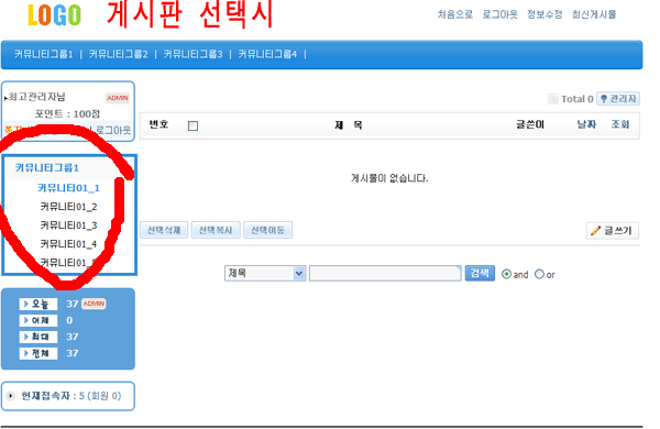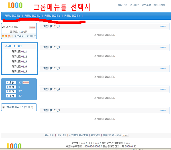 ◎ 그룹을 추가하면 메뉴에 자동으로 그룹추가, 게시판 생성시 서브메뉴에 게시판 자동으로 생성