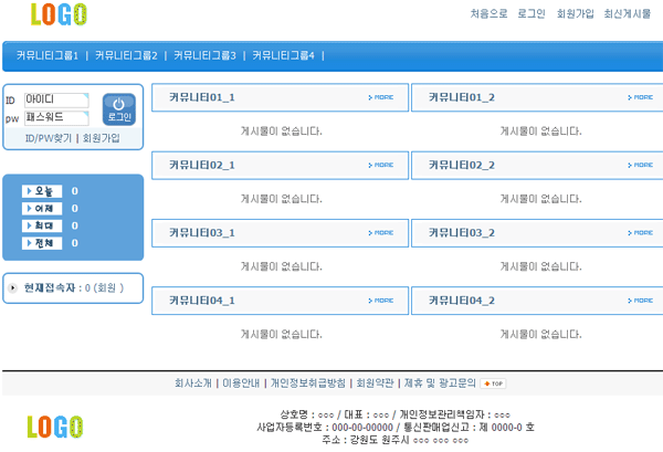 ◎ 스킨은 토탈나라및 SIR에 배포되어있는 스킨을사용, 로그인스킨, 방문자, 현재접속자, 최신글 등