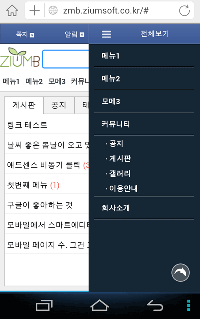 . 모바일 메뉴가 변경 되었습니다.