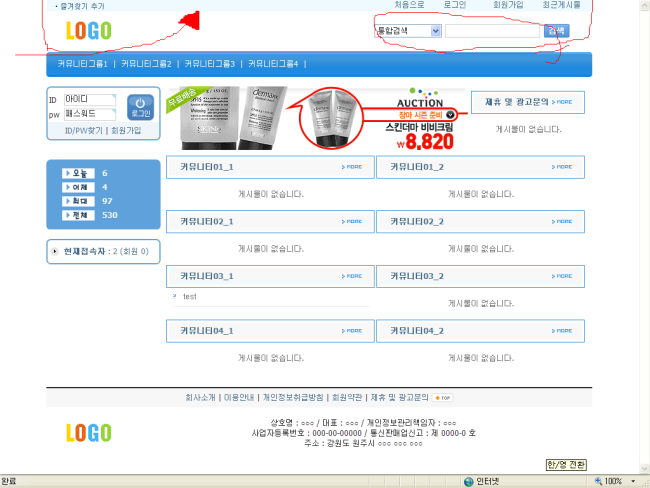 커뮤니티 1.01에서 상단 검색기능 추가, 최상단 스킨화