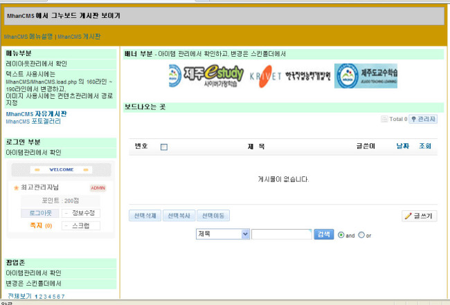 MhanCMS(명한CMS) v1.60 ( With GNUBoard4, Template_) - 데모사이트 열었습니다.관련링크