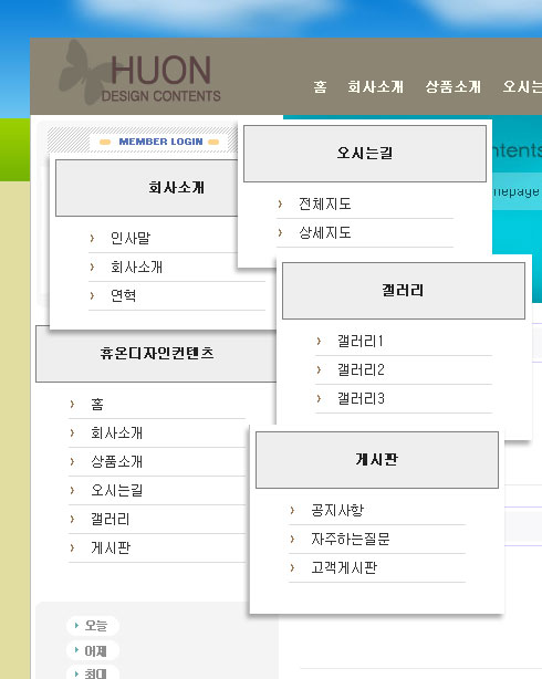 http://huon.co.kr/ds//sub04/addpage.htm 보니까 상단 해당메뉴 클릭시