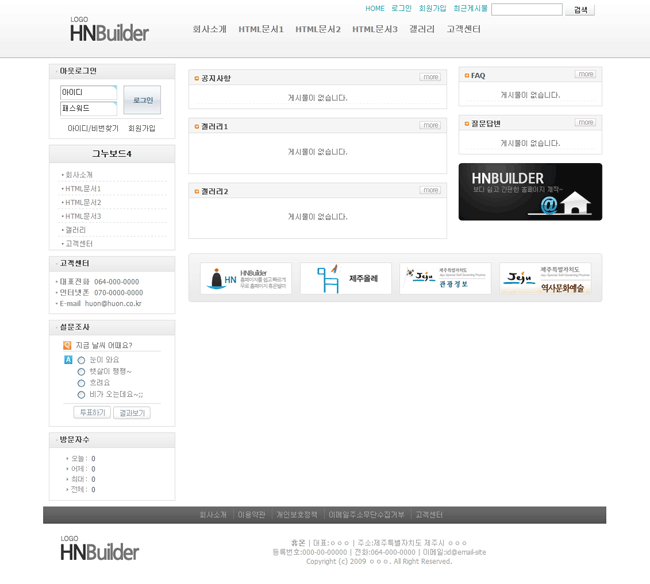 HTML게시판('/board/hn_html_page')을 이용하여 HTML 내용페이지를 손쉽게 생성하고 관리할 수 있습니다.