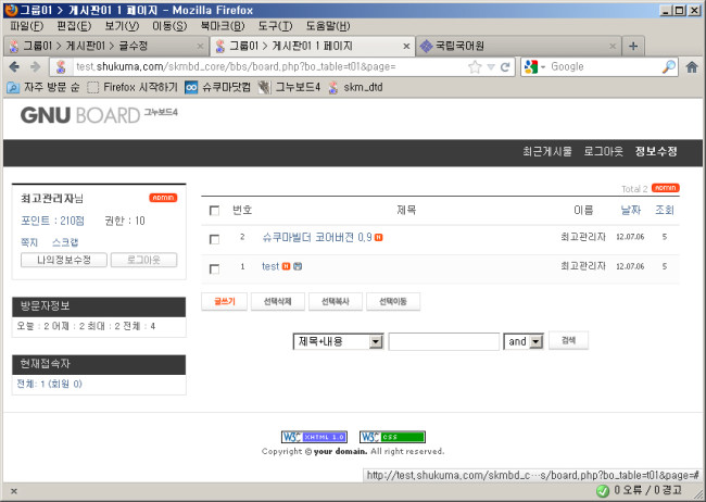 "W3C" 웹표준 및 "CSS3" 을 모두 통과한 보드입니다. (관리자 페이지 포함)