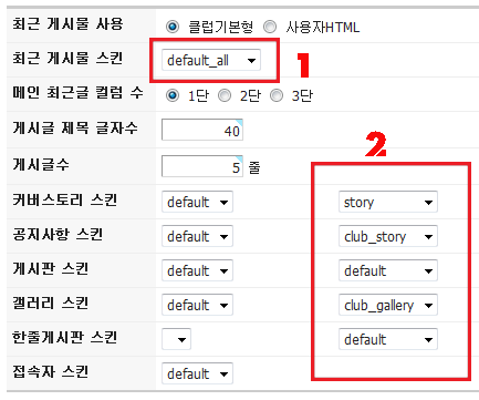 그리고 게시판 스킨도 그누에서는 잘 동작하는데 클럽 보드 스킨에다 넣어서
