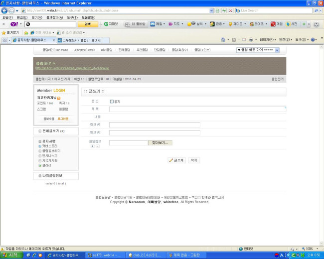 게시판을 클럽2의 것이 아닌, 사이트에서 사용하는 것으로 바꾸세요.