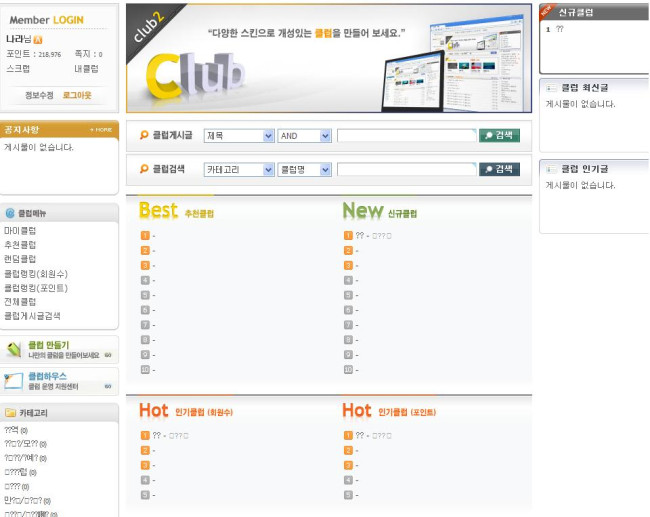 어렵게 설치는 했으나... 카테고리와 게시판 메뉴, 클럽이름이 깨집니다.