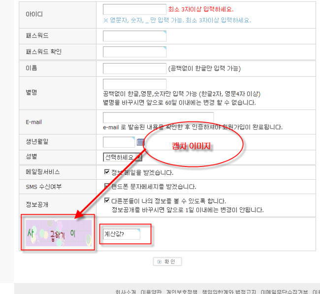회원가입스킨 매쓰캡차 적용