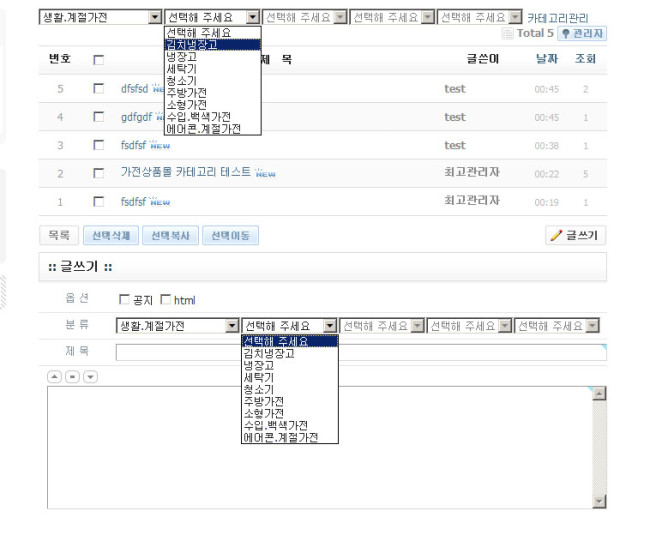 * 카테고리관리자에서의 작업은 게시판 테이블 데이타에 영향을 주지 않습니다