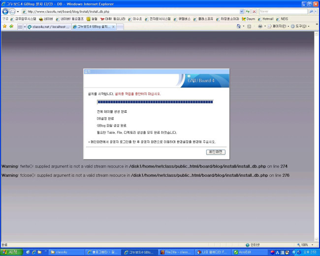 Warning: fclose(): supplied argument is not a valid stream resource in /disk1/home/netclass/public_html/board/blog/install/install_db.php on line 276
