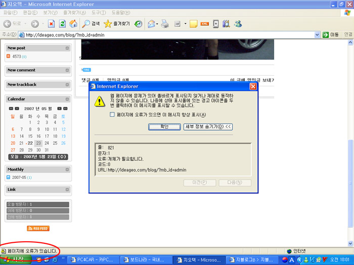 페이지들마다.. 에러나는 줄은 조금씩 차이가 있는데요..
