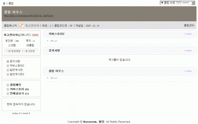 그리고 초기화면에는 커버스토리, 공지사항, 전체 최신글의 3가지가 출력이 됩니다.