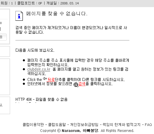 그리고 이미지 클릭하면 페이지를 찾을 수 없다는 친숙한(?) 화면이 떠요 ^^
