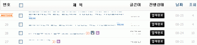 현재 게시판에 적용되어있는 간단한 결재기능입니다.