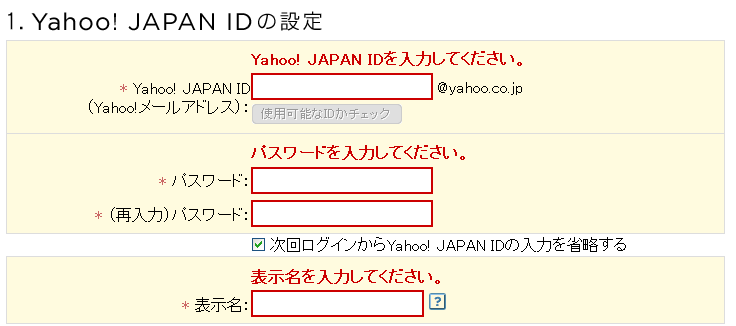 일본 야후 회원가입폼인데 아무것도 안적으시고 아래 버튼 눌러 보시면