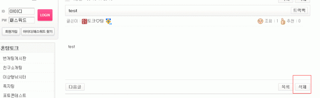 비회원도 다른 사람의 글을 삭제 할 수 있다는 것이 문제.