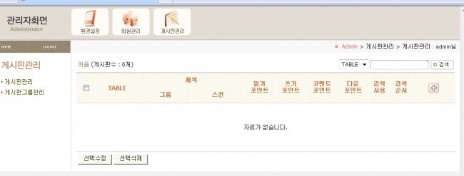 공지사항 게시판은 존재하지만 관리자페이지에서는 보이지 않네요