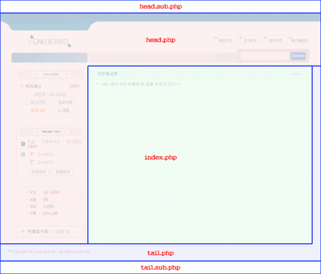 설치는 했는데 아래 부분에서 head.sub.php와 head.php를 없애고 index.php를 중앙정열을 하지 않고 브라우저 좌로 가게 하는 방법 좀 알려 주세요.