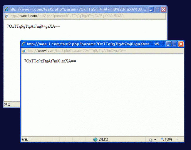 <a href='javascript:;' onClick="javascript:window.open( 'test2.php?param=7OxTTq9gTtgAt7mj0%2BgaXA%3D%3D', '','resizable=no,scrollbars=no,status=yes,width=600,height=300')">popup_1(정상)</a><br><bt><ahref="javascript:popup_window( 'test2.php?param=7OxTTq9gTtgAt7mj0%2BgaXA%3D%3D', '','resizable=no,scrollbars=no,status=yes,width=600,height=300')">popup_2(비정상)</a>