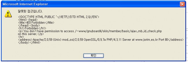 회원가입시 아이디를 입력하면 아래와 같은 에러가납니다.