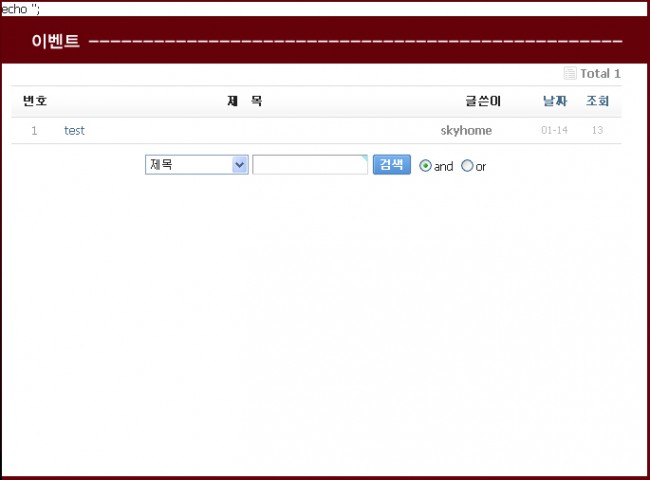 제일 상단부분에 echo";echo"; 이렇게 뜨는데요 이유랑 해결방법좀 부탁드립니다.