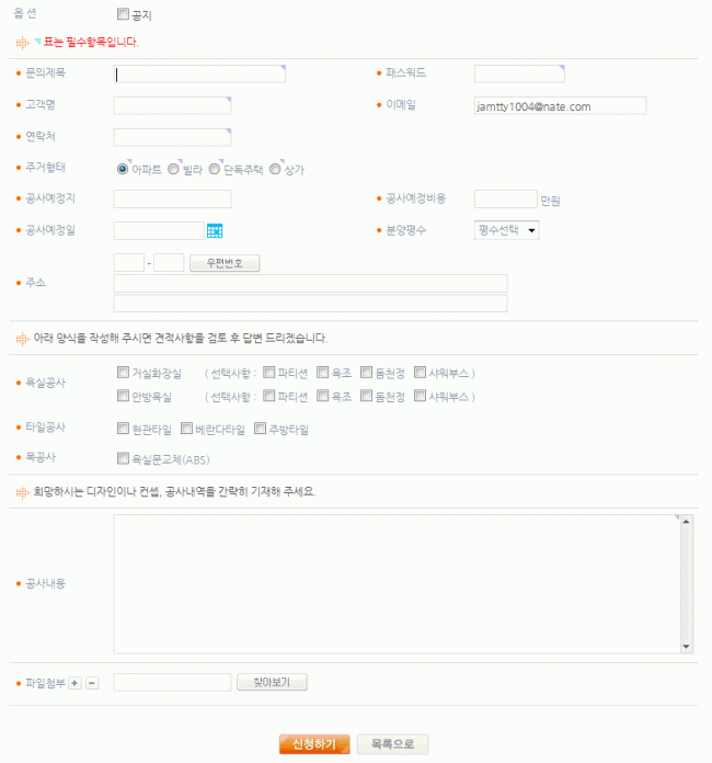 이번에는 인테리어 관련 견적문의 폼 입니다.
