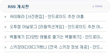 이거 대박 스킨입니다. 네이버에 분야별 활성화된 카페 다 긁어와서 포털 만들게 되었네요.^^ 잘 쓰겠습니다. 근데 문제가 발생했습니다. 네이버 점검시 RSS를 못불러오니까 사이트에 최신글 적용한 상태에선 사이트가 아예 접속조차 않되는 현상이 있네요.