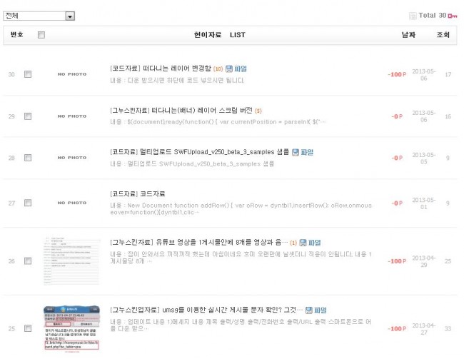 제홈에 자료게시판으로 이용하고자 변형하다가 필요 하실듯 해서 올려 드립니다.