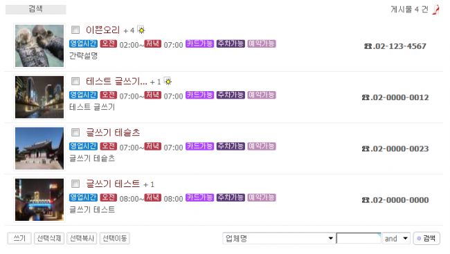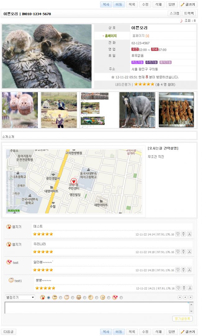 아파치님의 음식점 소개 게시판 스킨에서