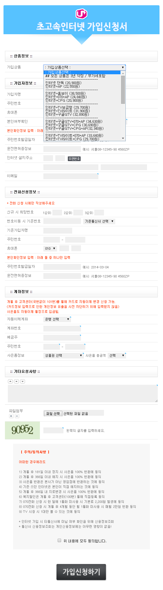 (초보용) 인터넷가입신청서 LG용 정보