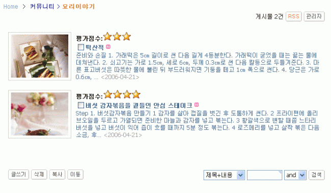 유아원님의 요리정보 게시판이 맘에 들어서 몇가기 기능 추가하였습니다.