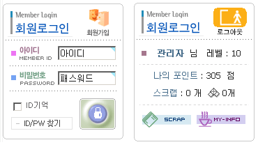 이렇게 허접한 로그인 스킨에 관심 가져주셔서 고맙습니다. 회원탈퇴는 정말 탈퇴할까봐 못넣습니다.^^