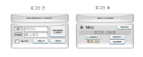 오우 좋습니다. 그러나 역시 오래쓰기엔 심플한게 좋긴 하지만..자신의 사이트 분위기에 알맞는거 선택하면 되니까..아무튼 끌리는것임에는 분명합니다. ^^ PHP가 뭔지 모르지만 디자인 조금 하는걸로 위와 같은걸 만드셨다니 bbking님 기준 스킨제작 강좌 같은거 해주세요. ^^ 많은 분들이 기능추가된 게시판은 안되더라도 그 껍데기라도 이쁘장한게 여럿 나올 수 있도록..bbking님이 힘 써주세요. ^^