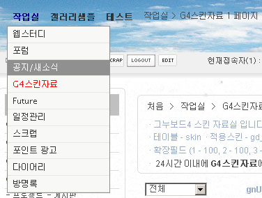 전..루트에 그누보드를 설치했는데 꼭 g4에 그누보드를 설치해야 이 메뉴스킨이