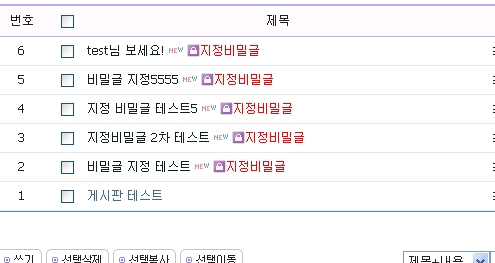 게시판 리스트에서는 지정한 비밀글의 경우 붉은 글씨로 "지정비밀글" 이라고 표시됩니다.