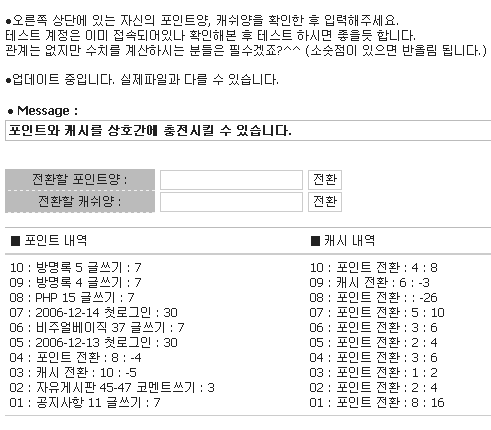 내용 : 깜직한 악마님이 만드신 캐쉬를 포인트를 이용하여 충전