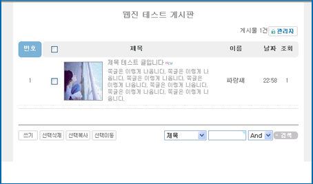 이 게시판과 셋트로 역시 이미지와 제목, 쪽글을 뽑아내는 최근글도 있습니다. 바로 같이 올리겠습니다.