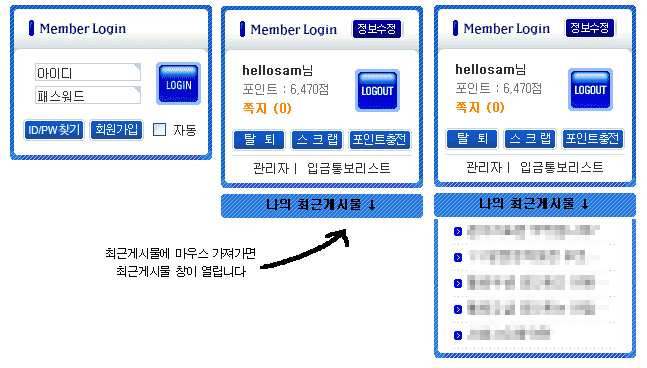 블레스님 로그인 스킨을 제 입맛에 맞게 조금 고쳤습니다.