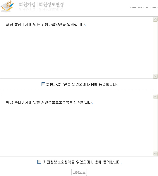 회원통합스킨 착한아담 멤버스킨 + 개인정보보호정책 추가(register.skin.php)