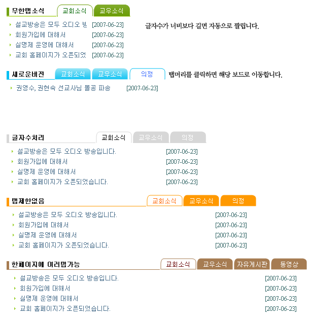 <?=tab_list("basic_blue","새로운버전","교회소식/교우소식/의정", "m5_1/m5_2/m5_2","1","6"); // 탭 리스트?>