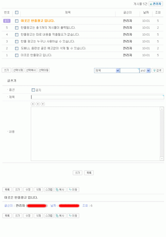 한줄 광고용으로, 내용이 필요없는 게시판을 만들다가 그냥 만들어봤습니다.
