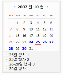 날짜에 마우스를 올리면 풍선도움말로 해당일의 일정을 보여주는 방식으로 하면 무척 좋을 것 같습니다.